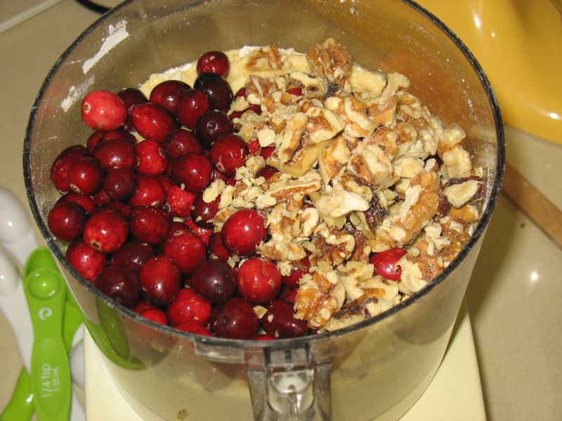 This is another of my mother’s great recipes, a moist bread so fresh-tasting with cranberries and orange flavor that you’ll find your day just won’t start quite right during cranberry season if you haven’t had a slice of this for breakfast. But it’s also good for snacks, and a fairly guilt-free snack at that: with only one egg and two pats of butter, it’s low-fat, but with flavor.