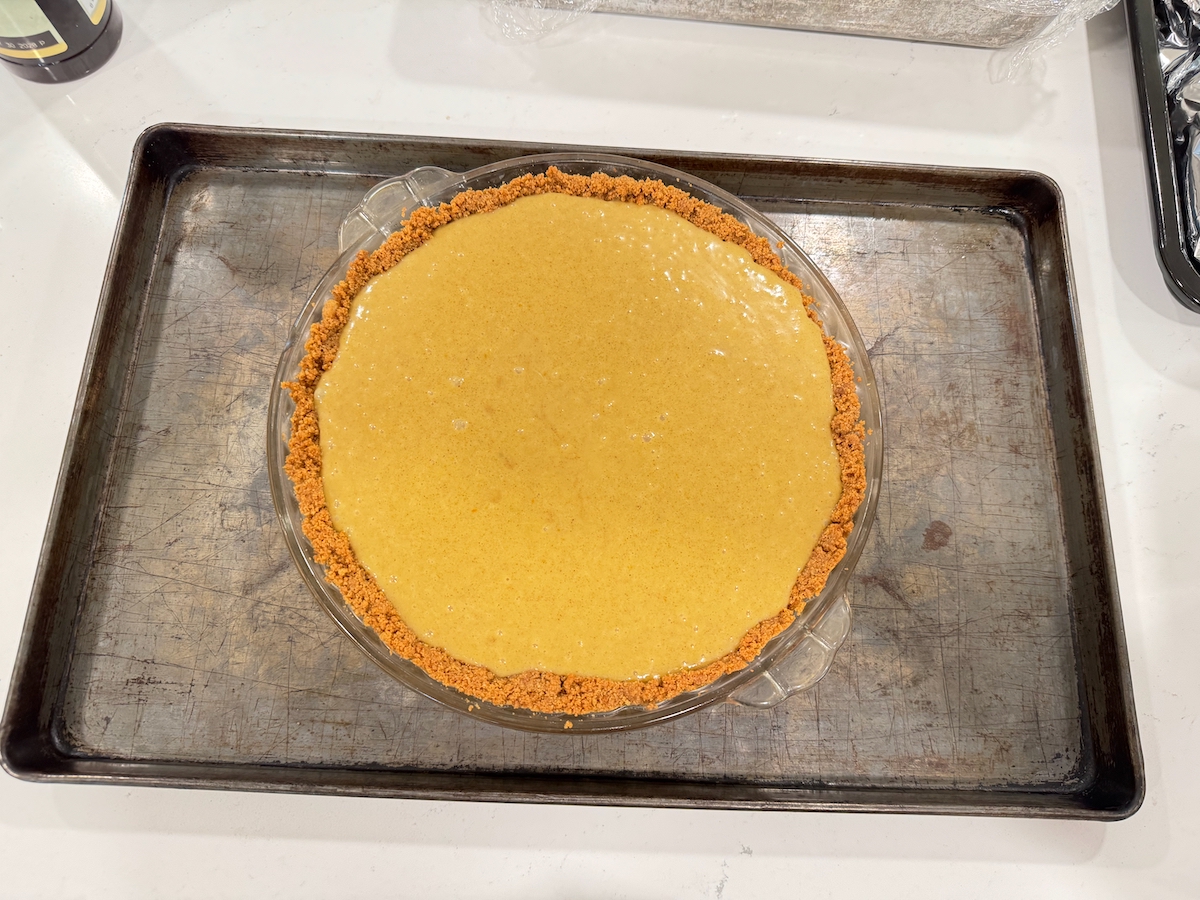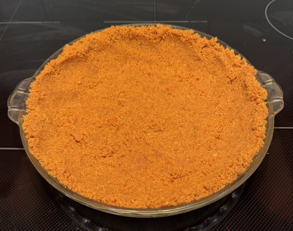 - Step 1: Prepare the crust: Heat oven to 350 degrees. Add the crushed crackers/cookies, sugar and salt to the bowl of a food processor and pulse to form medium to fine crumbs, about 20 long pulses. (You should have about 2 cups.) Add the melted butter and pulse to combine. Tip the graham cracker mixture into a 9-inch pie plate and use a measuring cup to press firmly from the center to the edge to form an even crust. Transfer to the oven and bake until the crust sets, about 15 minutes. Remove and cool.